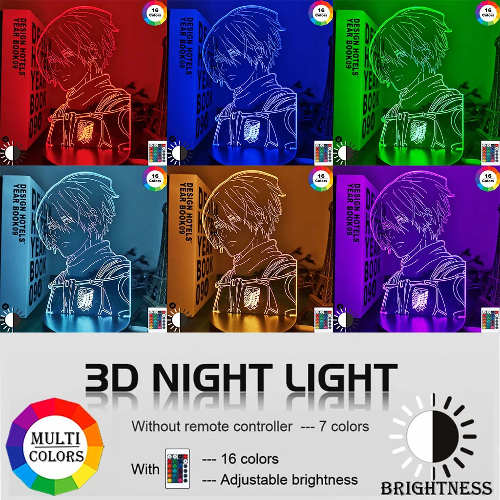 Акриловая 3D лампа Леви Аккерман Атака Титанов для домашнего декора...