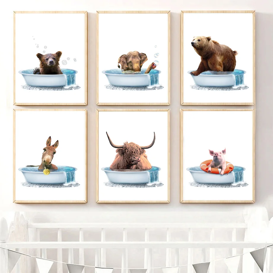 Слон, жираф, лиса, медведь, Сова, ванна, настенное искусство, печать, холст, живопись, ванная комната, туалет, скандинавский плакат, декор, фотографии, детская комната