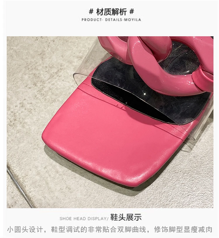 Шлепанцы женские летние, на каблуке 6 см, с цепочкой