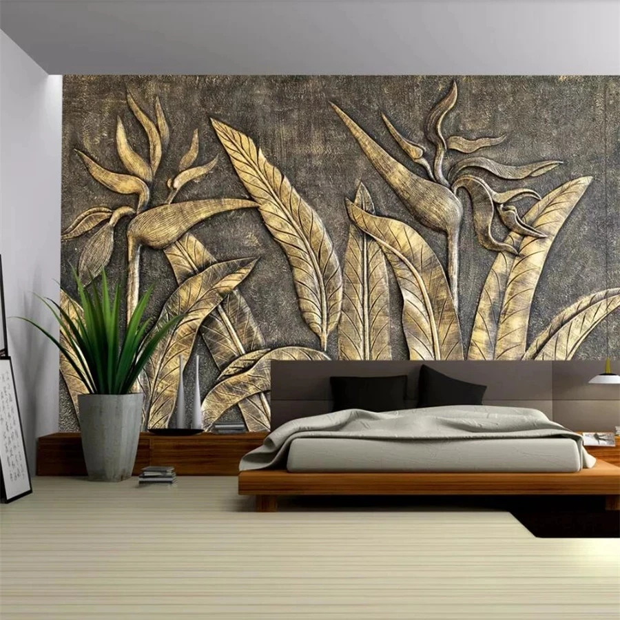 Самоклеящиеся обои на заказ 3D золотая птица рая скульптура настенный фон для гостиной настенная живопись Домашний декор роспись