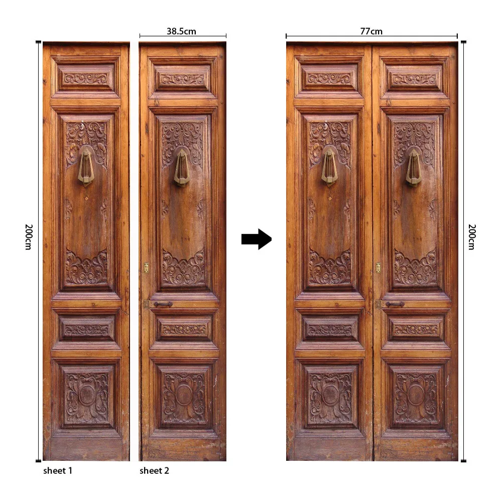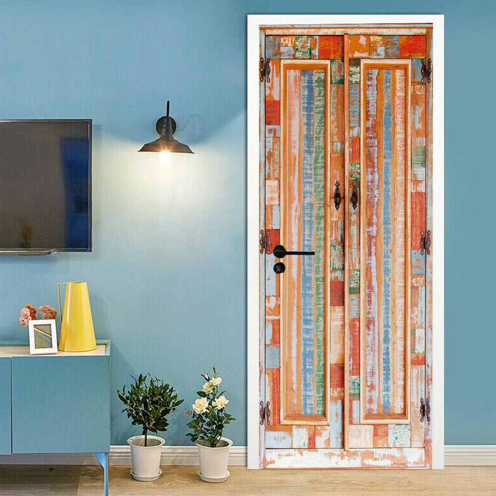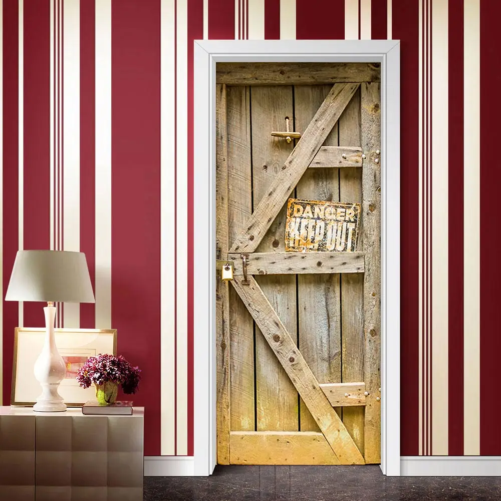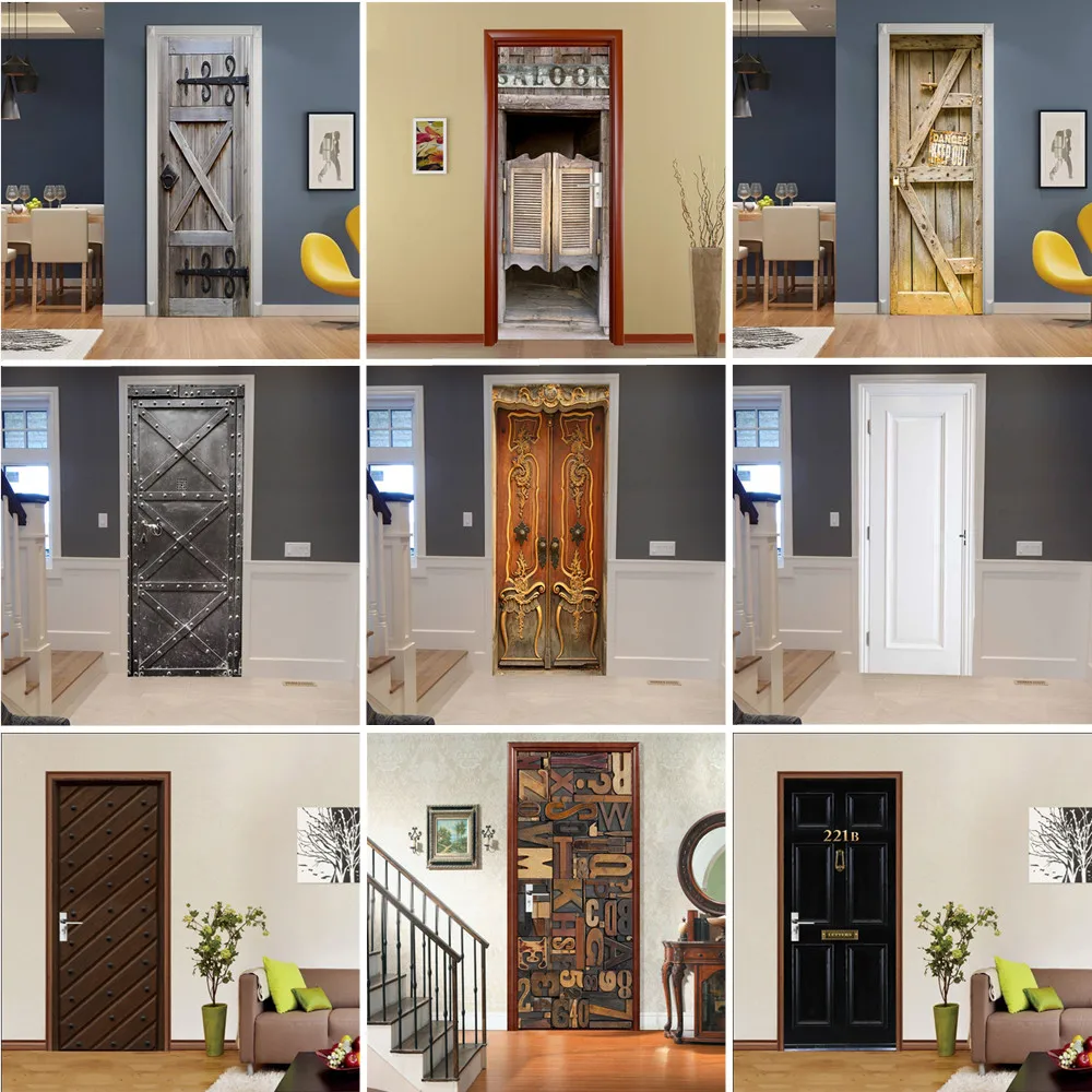3D обои в стиле ретро с имитацией деревянной двери, самоклеящиеся дверные наклейки, водостойкие съемные настенные наклейки из ПВХ, украшение для дома