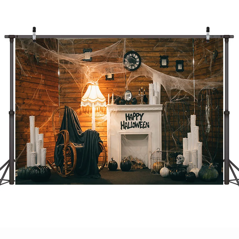 Фон для портретов на Хэллоуин, привидение, БЕЛЫЙ камин, студийная тыква, паутина, реквизит для фотосъемки на Хэллоуин