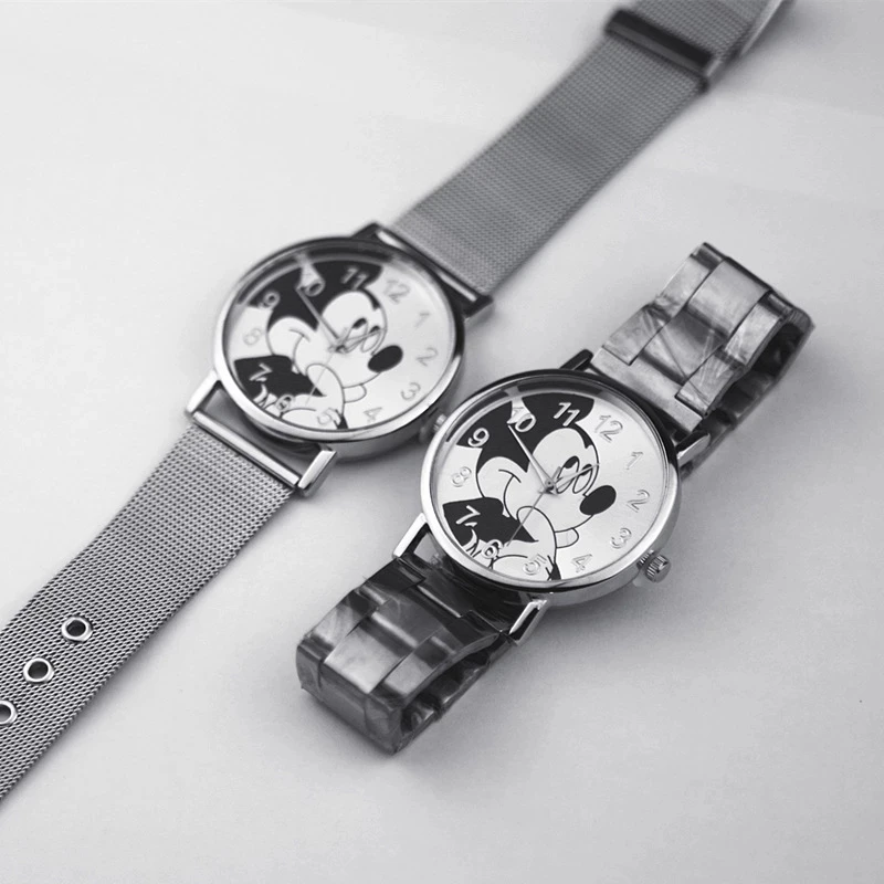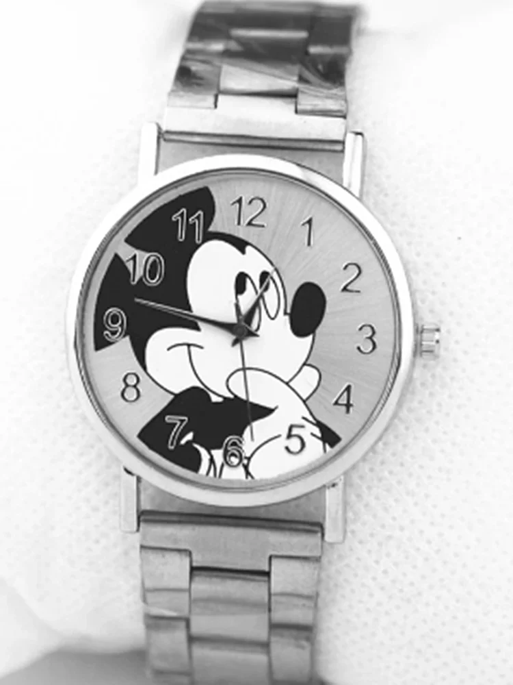 Часы женские кварцевые из нержавеющей стали, с изображением Микки Мауса