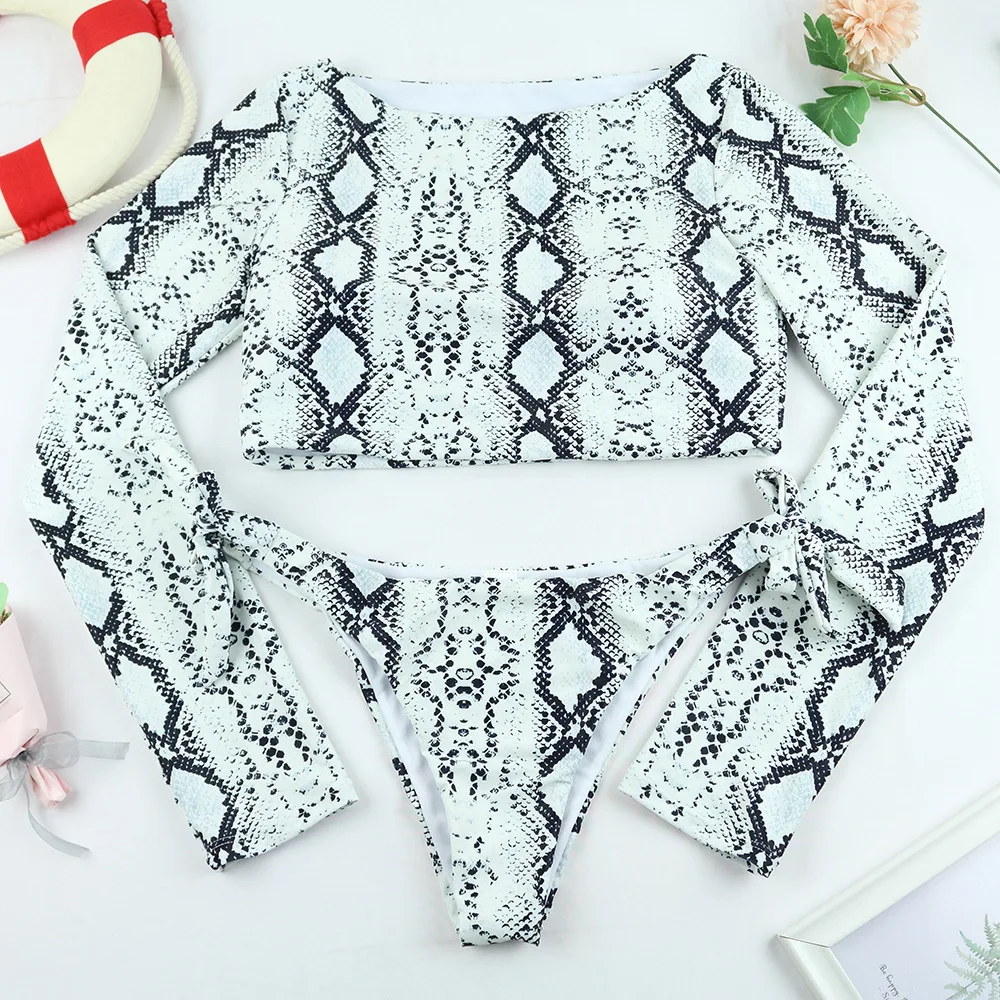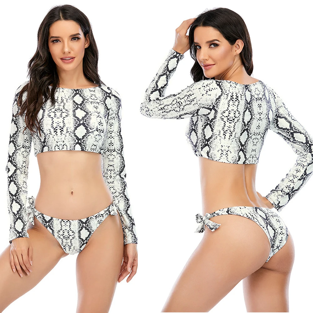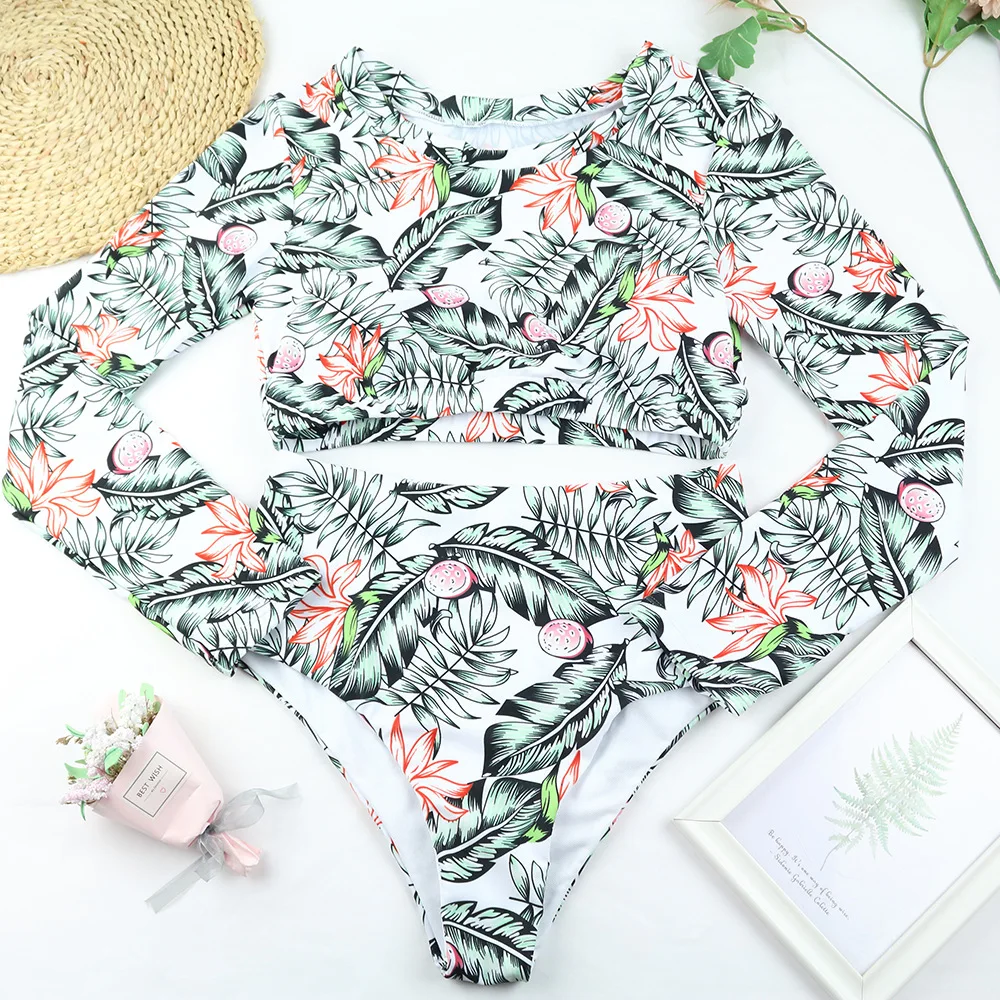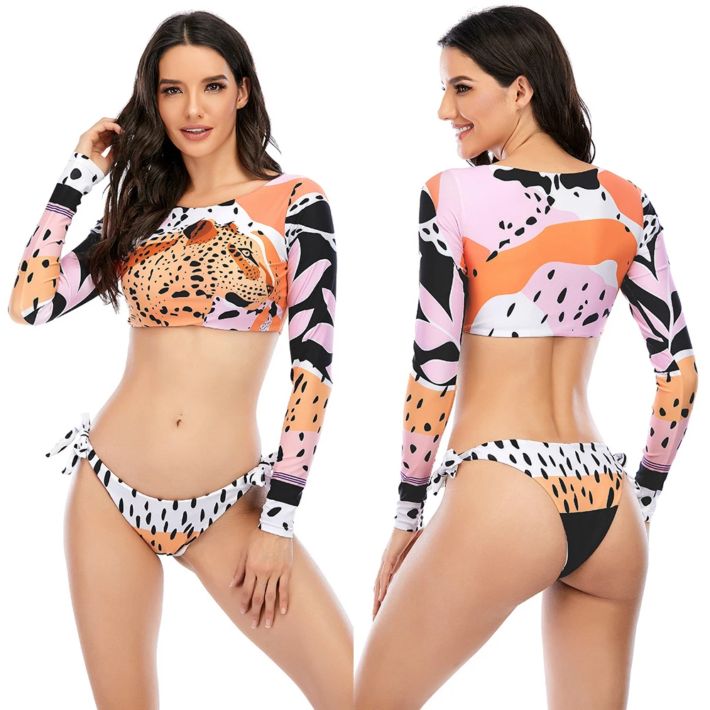 Женский купальник для серфинга, бикини с длинным рукавом, купальник с милым принтом и эффектом пуш-ап, летний купальный костюм из двух предметов, Бикини бандо, 2021