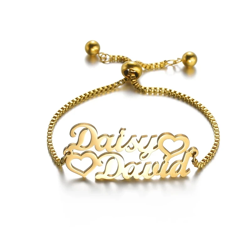 Модный Индивидуальный браслет Goxijite с 2 именами для женщин и детей, персонализированные регулируемые браслеты с двойным сердцем и именной табличкой, ювелирные изделия, подарок