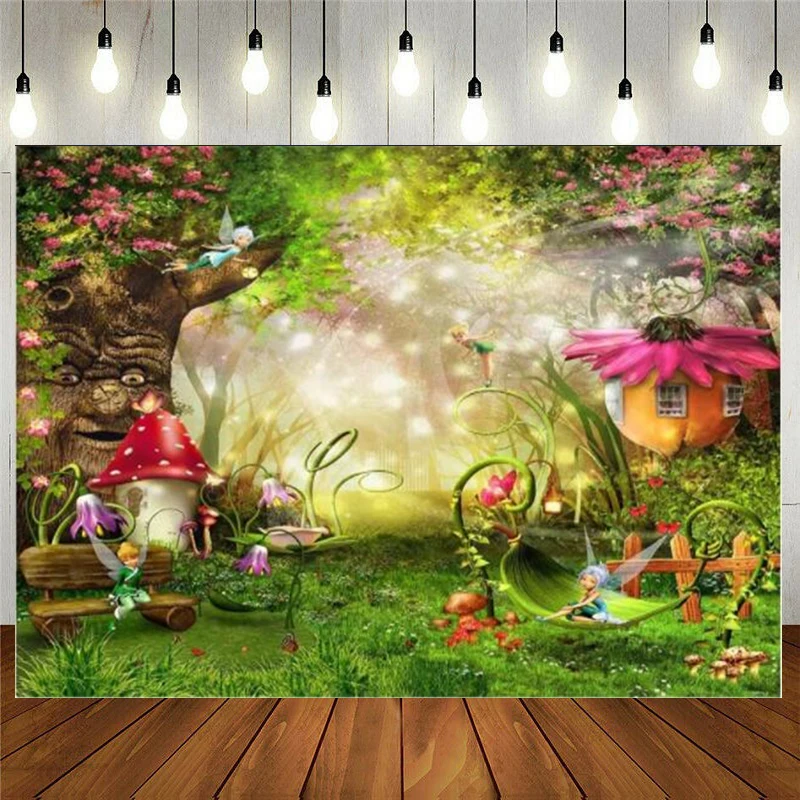 Фон для фотосъемки с изображением волшебного леса, волшебного большого дерева, гриба, украшения для дня рождения, баннера