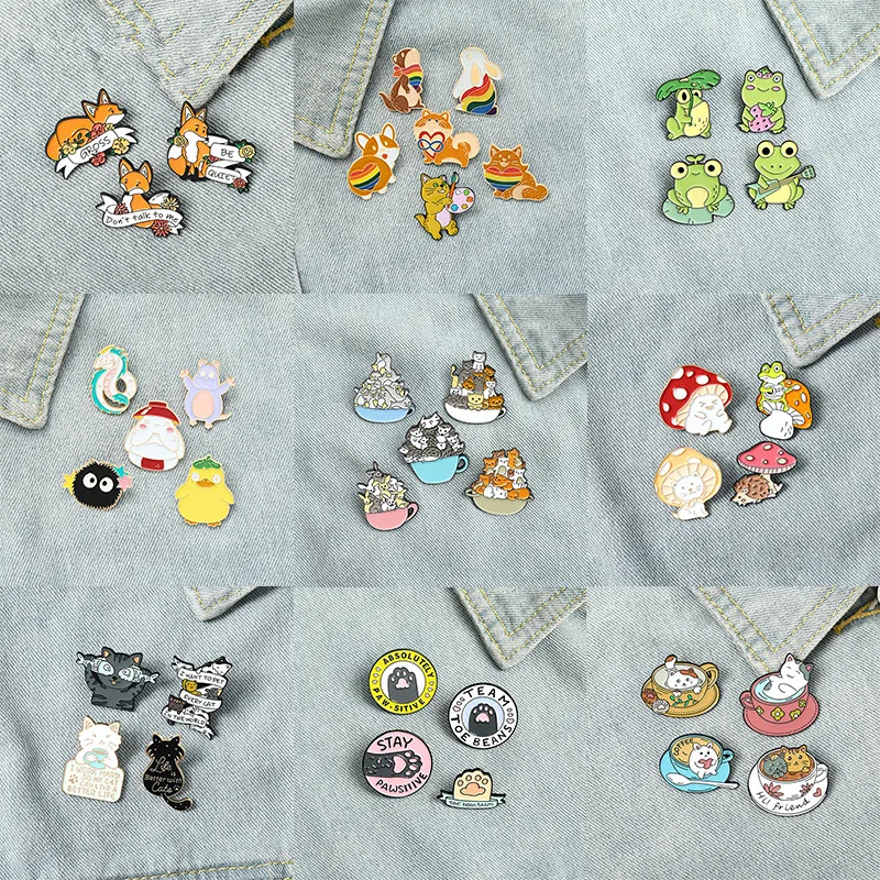 Эмалированные булавки в виде кошки, мамы, 3-6 шт.компл., индивидуальный значок в виде щенка, лисы, лягушки, медведя, зайчика, Милого Животного, значок для вечеринки, ювелирные изделия, подарки, оптовая продажа
