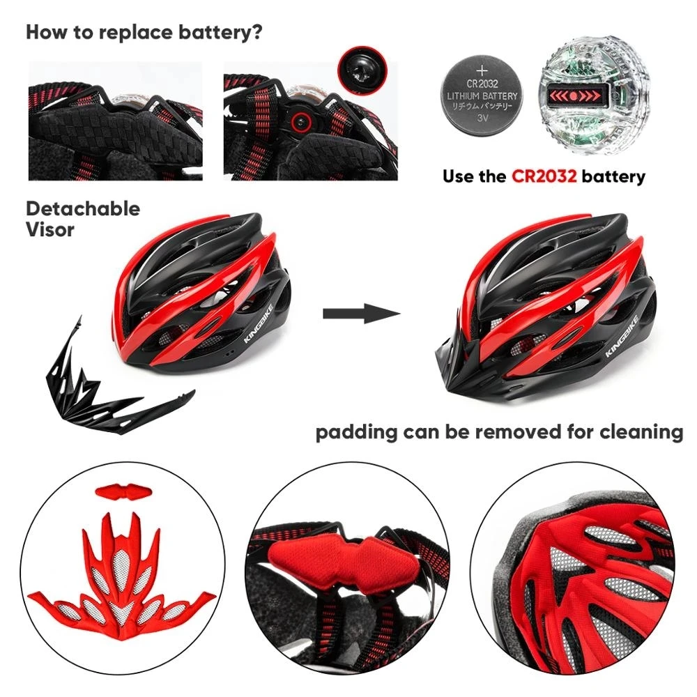 Характеристики:Бренд: KINGBIKEНазвание продукта: велосипедный шлем, велосипедный шлем, велосипедный шлемВес: около 230 гПол; Взрослые Женщины Мужчины mtb велосипедные шлемыЦвет: черный, белый, красный, синий. Зеленый, фиолетовый, розовый, титанХарактеристики: ультра-светильник, шлем с светильник, козырек шлем,Сцена: Горный велосипед и дорожный велосипедОсобенности:1: дышащая Удобная Амортизация2.:24 Отверстия для утечки, увеличивают невидимую мощность3 Предупреждение ющие задние фонари4: Защита от насекомых5: простая матовая поверхность, с сочетанием светильник, декоративная структура, простота и жизнестойкость.Светодиодный светильник безопасности:Велосипедный шлем с CPSC ,EN1078,GB и CE стандартом безопасности. В светодиодный светильник Применение с литий-ионным Батарея CR2032 3 В (1). Мысли expensice стоимость доставки. Мы не включаем батарею, это очень дешевая продажа в местном розничном магазине или супермаркете, вы можете купить ее там. Светодиодный светильник в том числе 3 светильник ing режимов-устойчивый, медленное мигание и быстрое мигание, который поможет людей позади вас хорошо распознает ваше направление и обеспечивают более высокий уровень защиты и лучшей видимости, когда вы едете ночью.Примечание:Этот шлем имеет функцию задней фары, но он не наклоняет батарею (CR2032), если вы хотите использовать функцию задней фары, пожалуйста, покупайте батарею в розничном магазине или супермаркете.