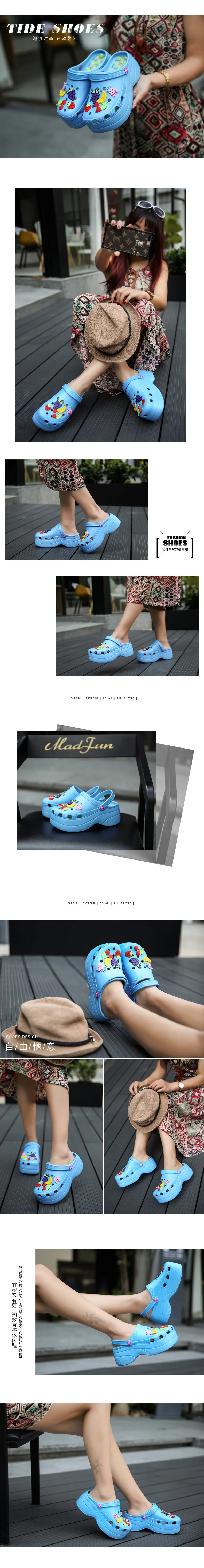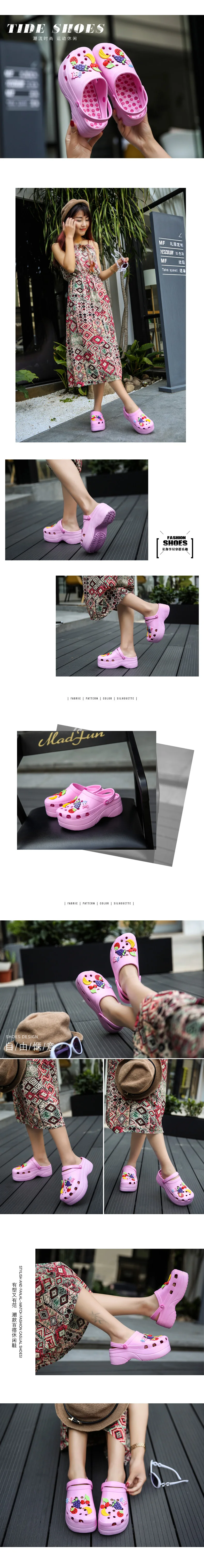 Летние женские босоножки на высоком каблуке с героями мультфильмов; Новинка 2021 года; Женские шлепанцы; Повседневные сандалии; Крокодиловая обувь