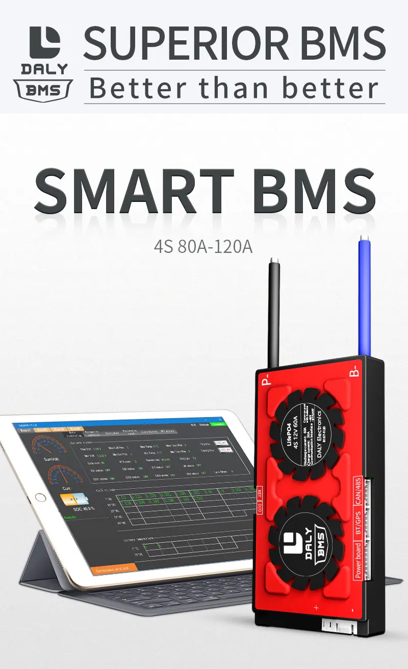 Daly smart BMS 3,2 V 18650 BMS LiFePO4 BMS 4S 12V 80A 100A 120A 150A BMS с Bluetooth UART RS485 CAN NTC функция◆ В настоящее время все умные BMS без водонепроницаемой функции.◆ Эта ссылка предназначена для 4S батареи 12 В LiFepo4. Пожалуйста, заполните параметр после размещения заказа, чтобы обеспечить SOC правильной информацией.