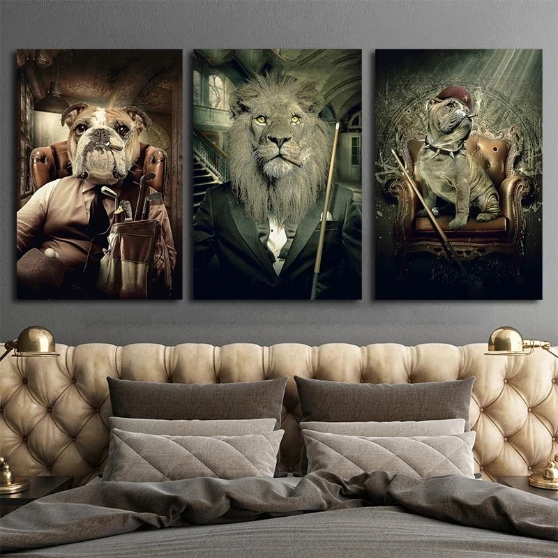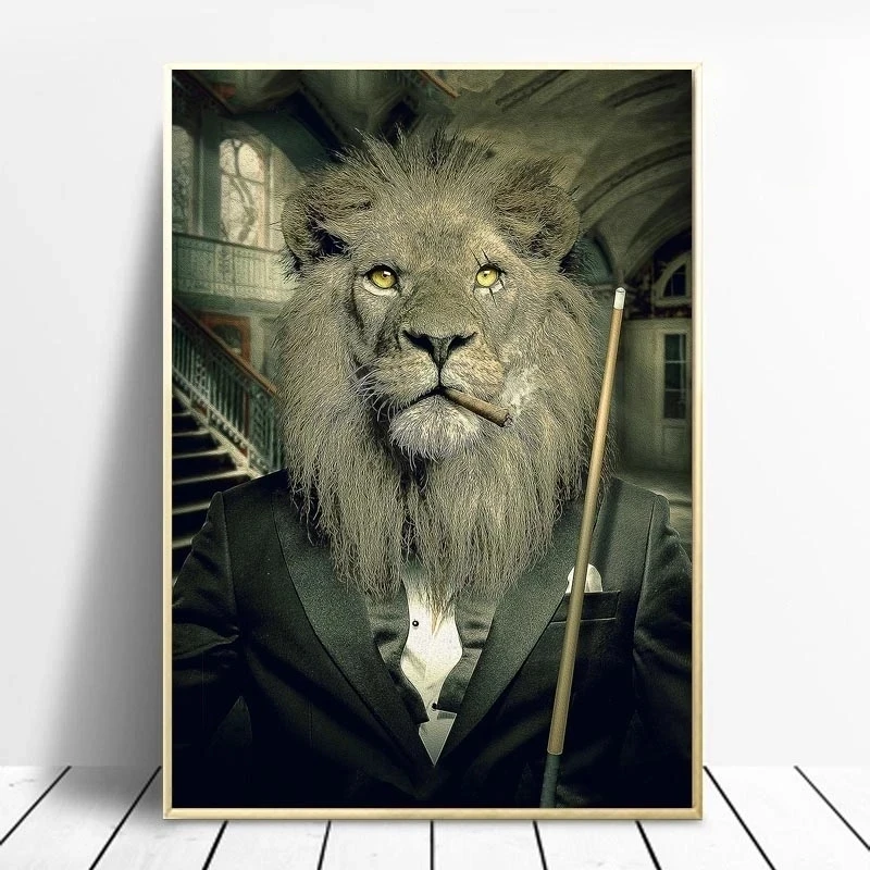 Джентльмен, животные, львы и гоги, игры в бильярд, холст, настенные картины, художественные плакаты и принты, настенный Декор для дома