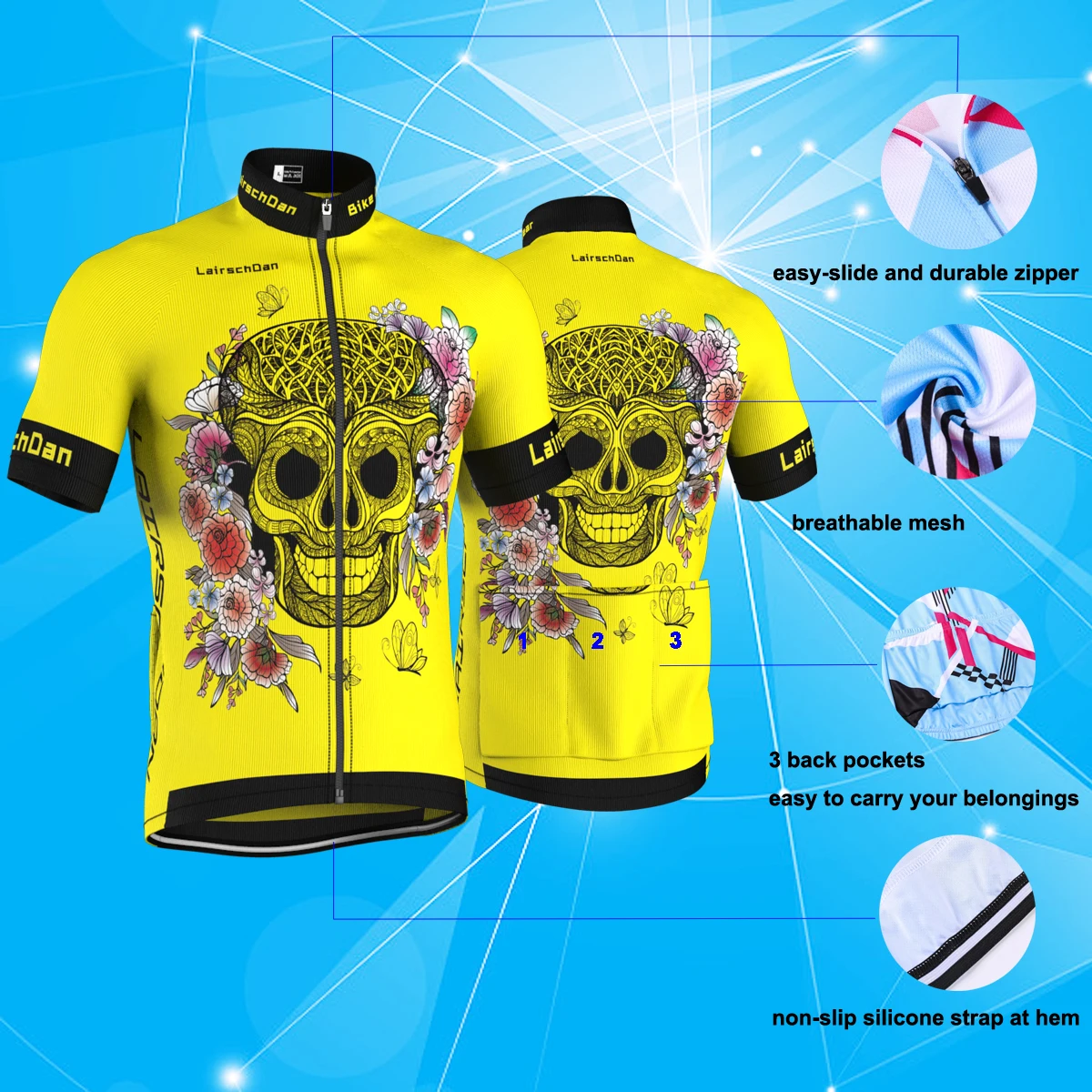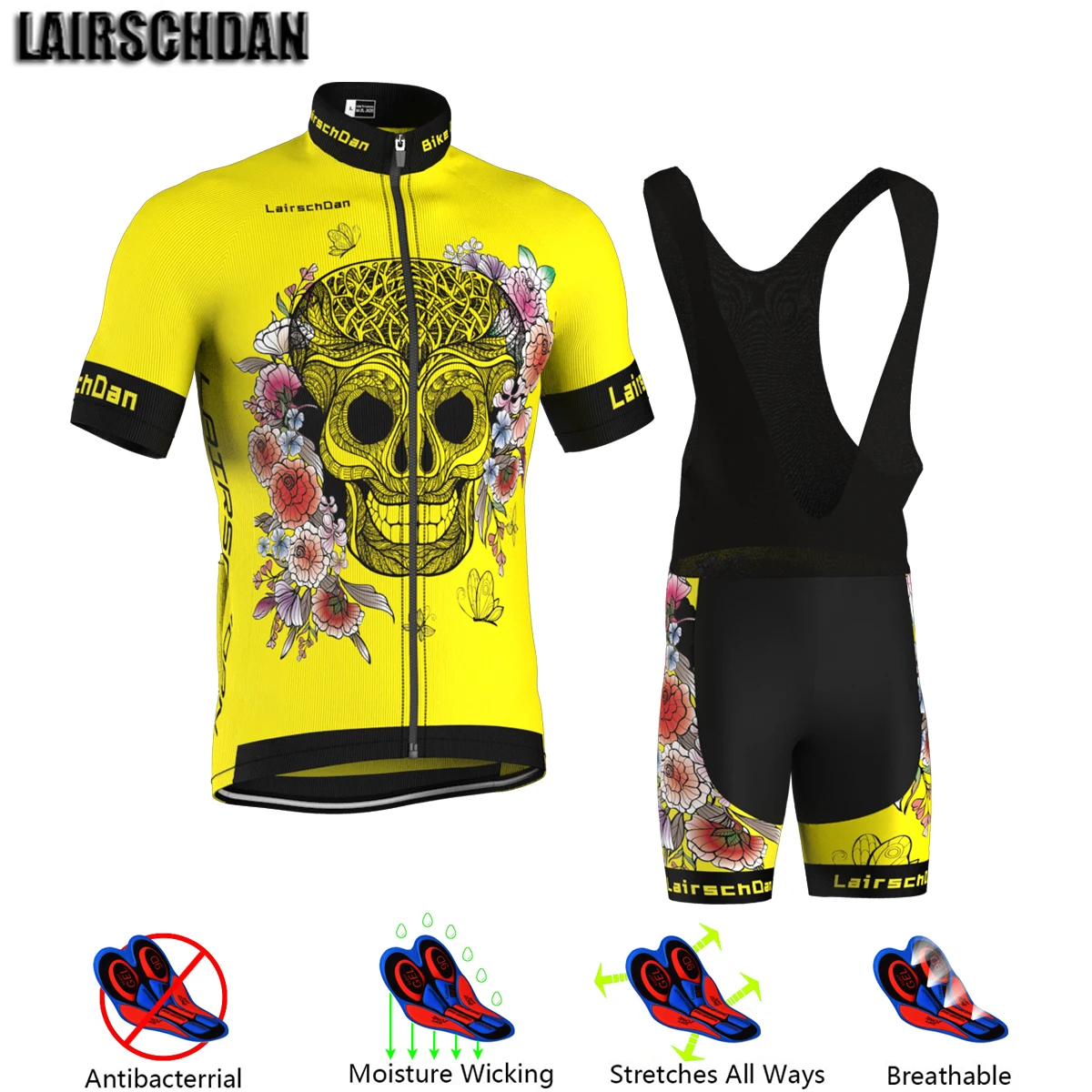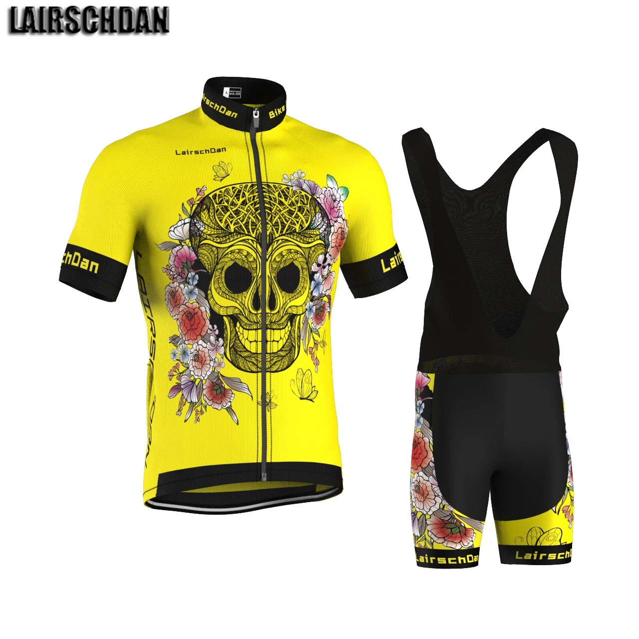LairschDan 2021 летний желтый велосипедный комплект с черепом для мужчин и женщин, велосипедная майка снаряжение для велосипеда, быстросохнущая велосипедная одежда rennrad trikot