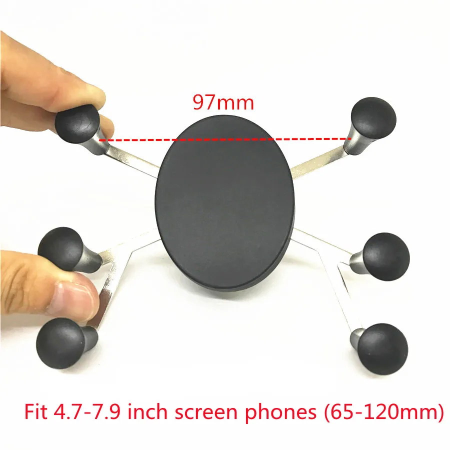 Держатель телефона подходит для 4,7-7,9 дюйма (65-120 мм) устройств (можно открыть ширина 55-97 мм, покупатели могут измерять телефоны в первую очередь), Также совместим с iPhone X и выше.(Пожалуйста, ознакомьтесь с приведенными ниже примерами, при использовании с некоторыми телефонами покупатели могут ориентироваться в правильном направлении.Например, для iPhone 12 13 pro или аналогичного. Вы можете разместить держатель 4 ручки выше и два вниз и удерживать с помощью эластичного. Добро пожаловать на запрос, если есть вопросы по установке)
