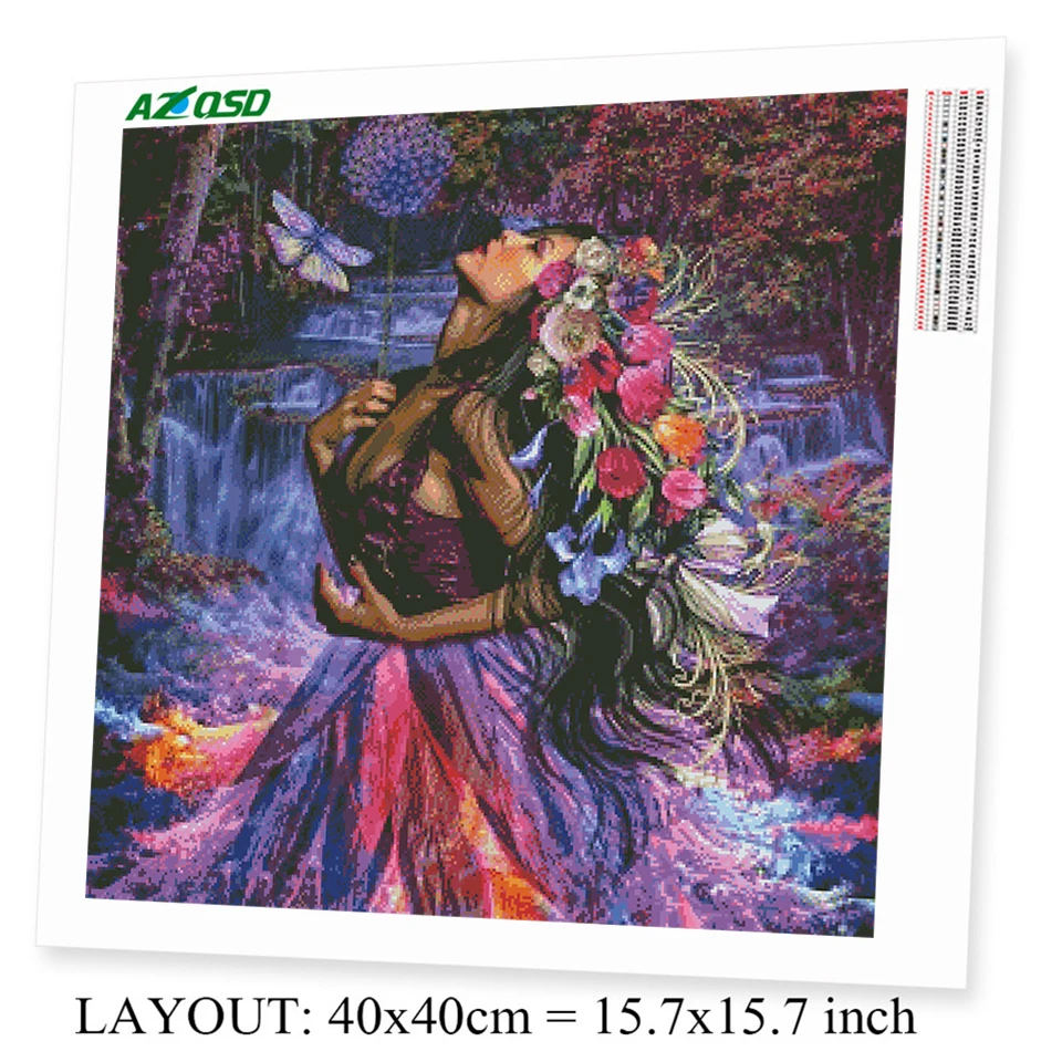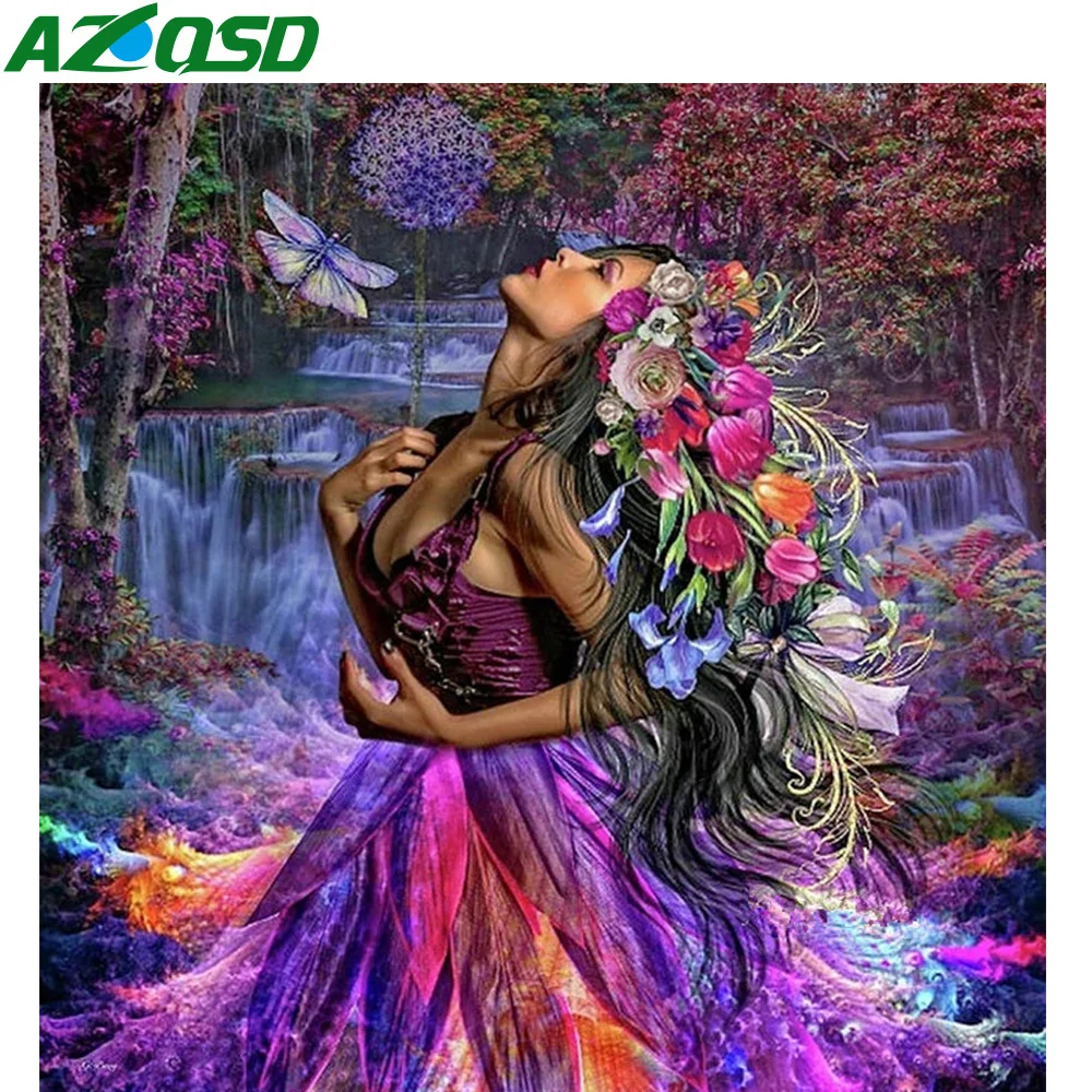 AZQSD полный квадраткруглая дрель Алмазная картина женский водопад рукоделие Алмазная вышивка, портрет мозаика домашний декор