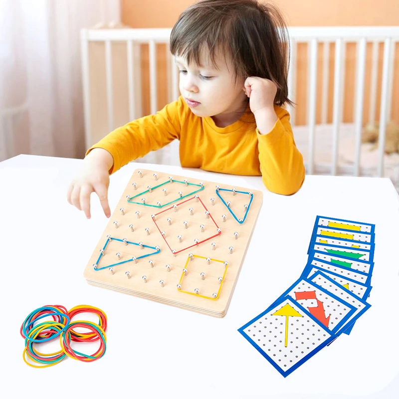Набор детских деревянных игрушек с геометрической фигурой, Резиновая лента, игра Монтессори, обучающая креативная игрушка, мелкий мотор для тренировки