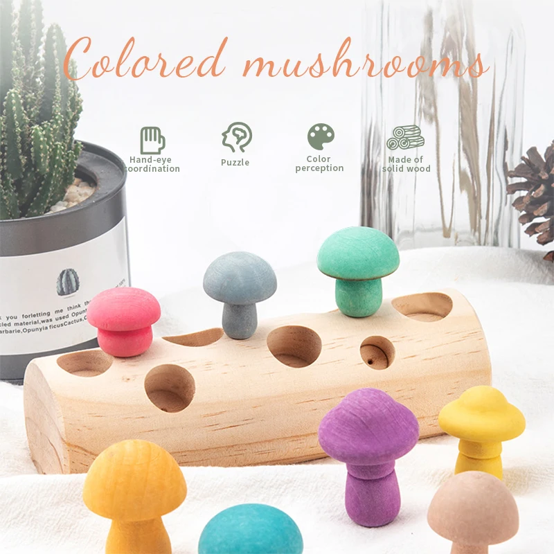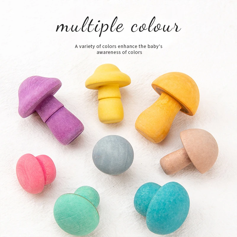 Деревянные радужные блоки 1 комплект, игра в грибы, развивающая форма, подходящая сборка, захват Монтессори, Развивающие детские игрушки