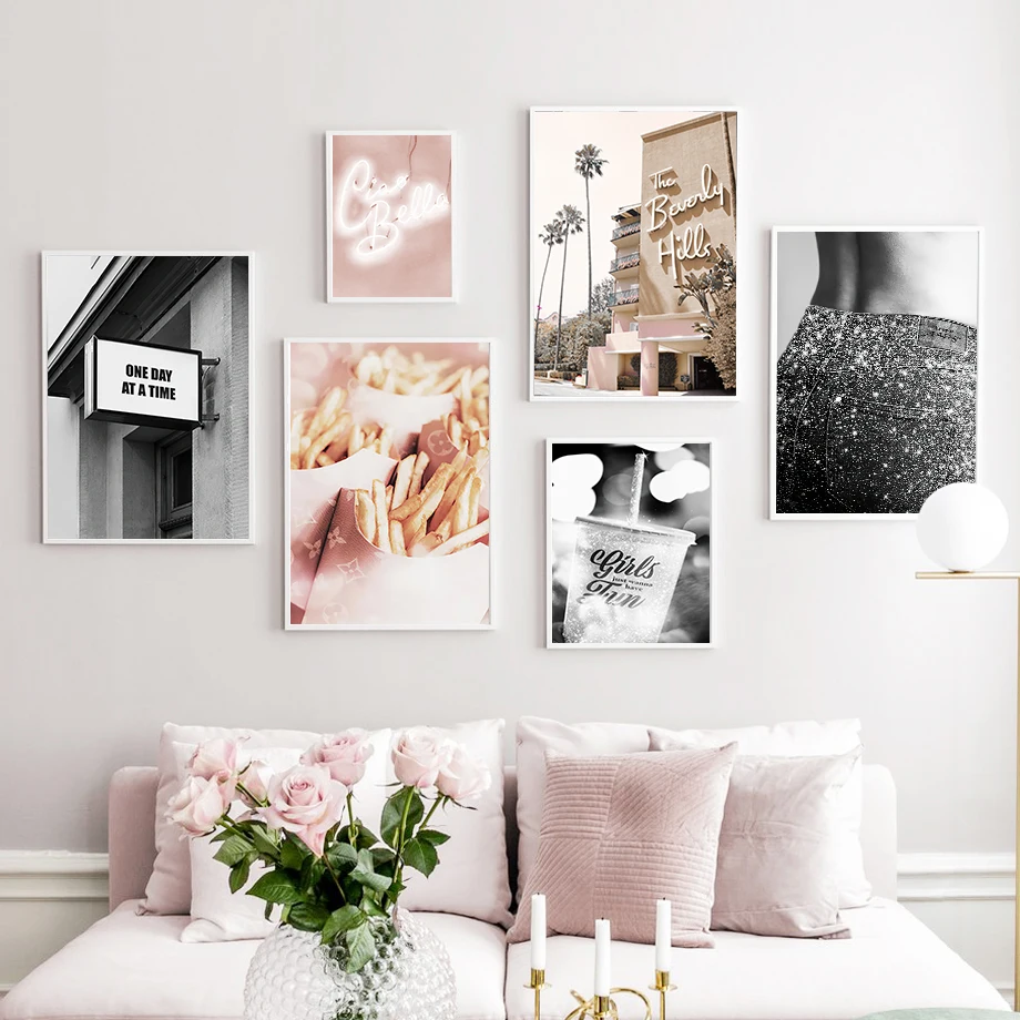 Кокосовое дерево дом блестящие джинсы девушка картофель стена искусство холст живопись скандинавские плакаты и принты стены картины для гостиной Декор