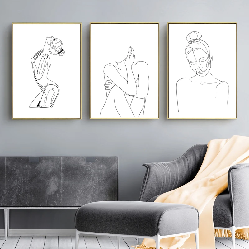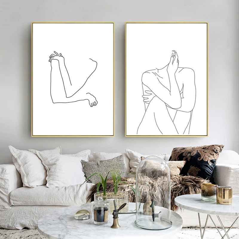Плакаты и принты с обнаженным телом для женщин, рисование скетчей, настенная живопись, холст, современный абстрактный минималистичный домашний декор