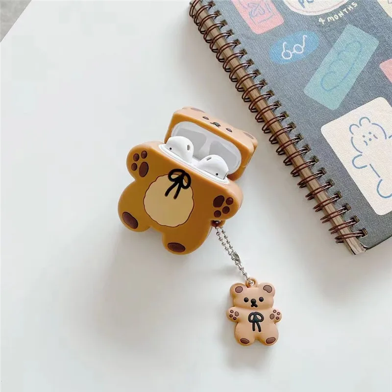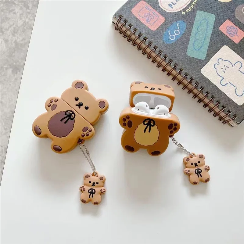 【Pretty Cute】: чехол для Airpods с брелоком, супер милый медведь с приятным мягким на ощупь, идеальные аксессуары для airpods для модных девушек и женщин могут завоевать больше внимания и притягательности, совместимы с Airpods 1/2 и Airpods pro