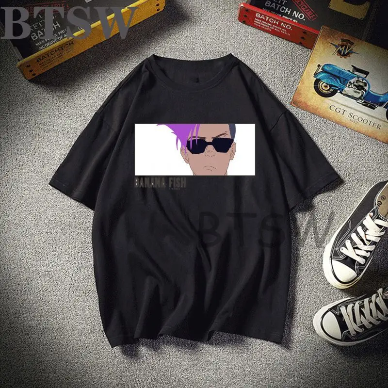 Топы Банановая рыба короче Wong аниме футболка мужская одежда принт Лето унисекс Мода размера плюс свободные Harajuku повседневные Забавные Рубашки