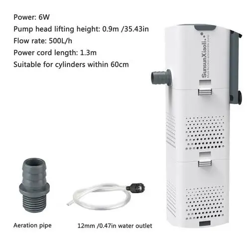 Мощность: 6 ВтГоловка насоса ifting Высота: 0,9 m/35,43 приток скорость передачи данных: 500L/чМощность Длина шнура: 1,3 мПодходит для цилиндров в пределах 60 смРазмер: 57 мм/2,24 дюйма * 200 мм/7,87 дюйма * 51 мм/2,00 дюймаВыход воды: 12 мм/0,47 дюймаУпаковочный лист:1 * насосПримечания:Из-за световых эффектов и углов съемки могут быть некоторые различия в цвете, пожалуйста, поймите.