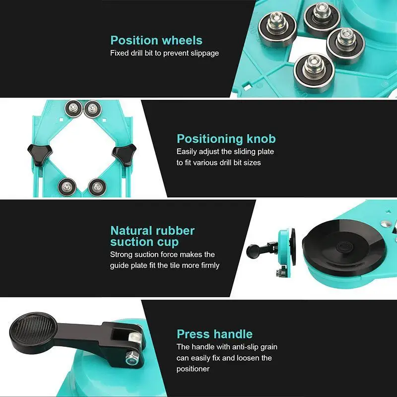 Регулируемое отверстие пилы направляющее приспособление с присоской. Съемные шариковые подшипники, достаточно большой, чтобы положить в все размеры отверстия пилы.