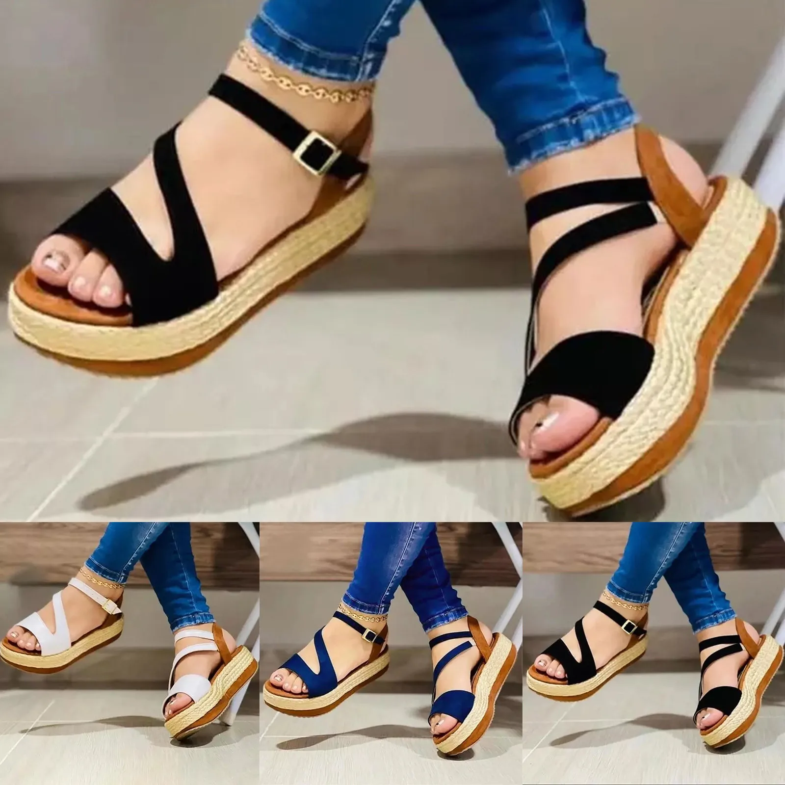 Сандалии JAYCOSIN Женские с открытым носком, босоножки на толстой подошве, с тонкими ремешками и пряжками, повседневная Летняя обувь на платформе