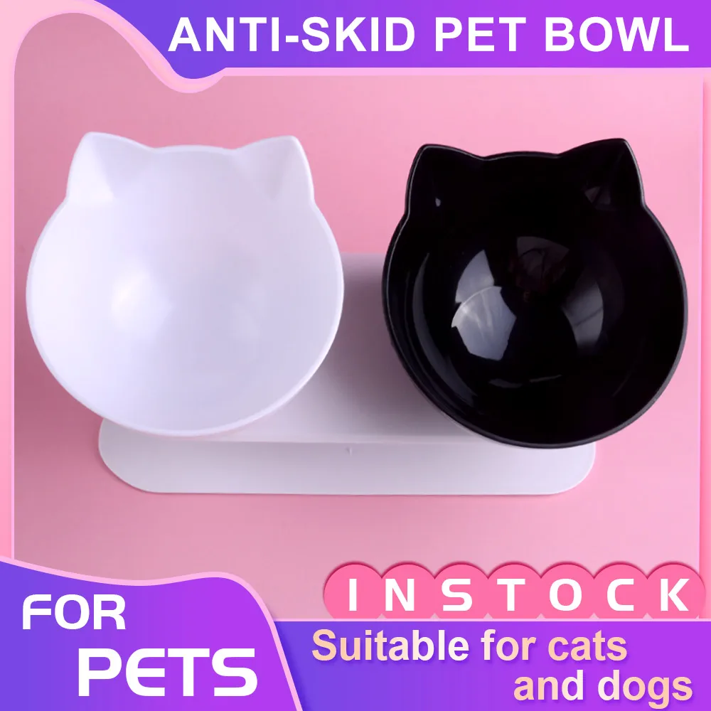 Двойная миска для кошек и собак, нескользящая поилка с подставкой, подходит для кормления кошек и воды, аксессуары для питомцев