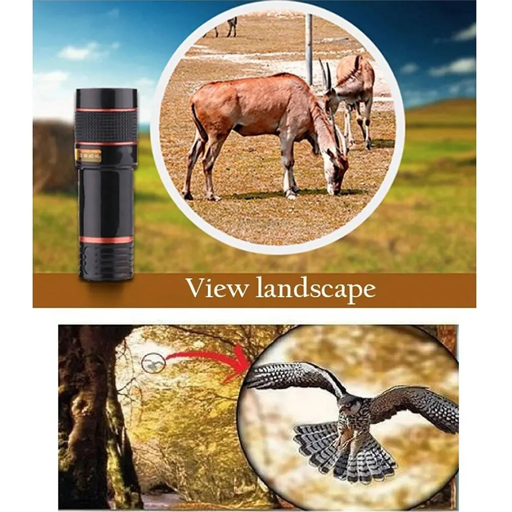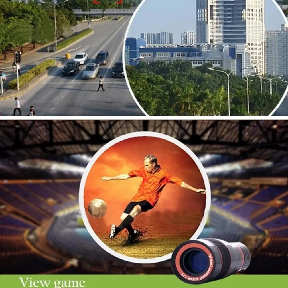 Особенности: 1. Изготовлен из твердого алюминиевого материала, он надежный и долговечный. 2. Стекло, линзы с зеленым покрытием обеспечивают лучший вид. 3. Предназначен для вашего смартфона, чтобы делать фотографии с более длительного расстояния. 4. Функция 20X zoom помогает вам приблизить тему к фотографии и запечатлеть детали с расстояния. 5. Позволяет прикрепить телефон к штативу для лучшего качества изображения. Описание: телескоп может использоваться как монокуляр. Подходит для просмотра игры, концертов, туризма, наблюдения за животными, съемки на дальние расстояния и т. д. поставляется с мини-штативом для удобного использования. Характеристики: зум: 8x,12x,14x Материал: металл Размер: 80*20 мм Цвет: черный, белый посылка в комплекте: 1 комплект объективов для камеры телефона
