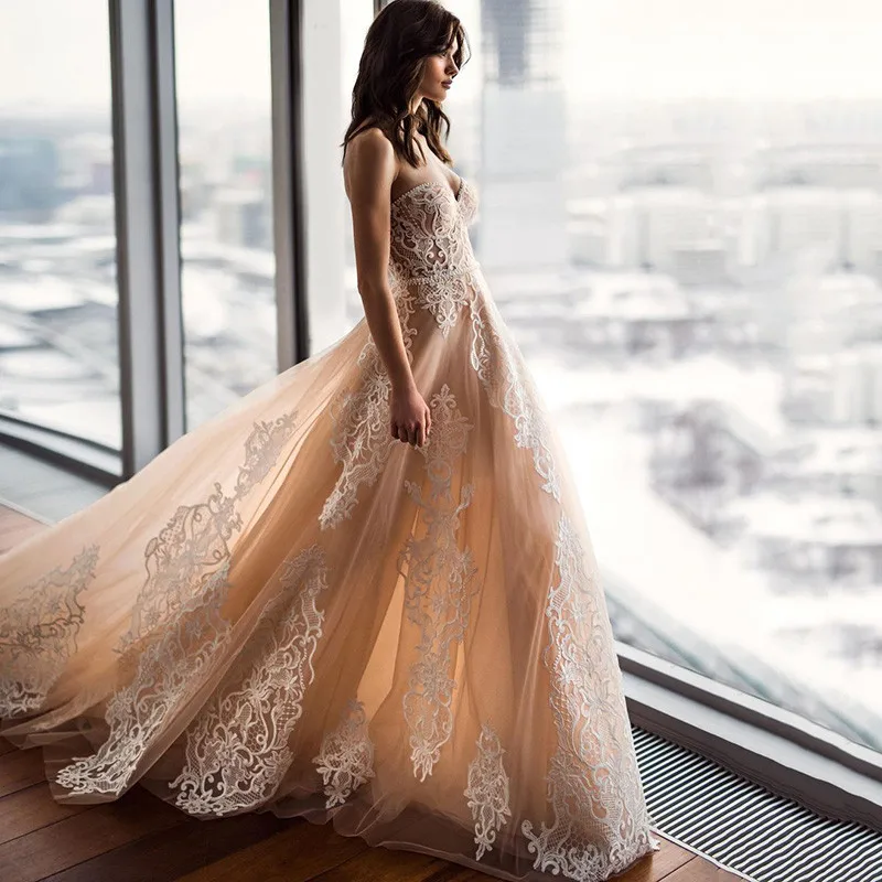 Винтажное свадебное платье цвета шампанского, кружевные свадебные платья высокого качества, а-силуэт, корсет на спине, свадебное платье в стиле бохо, 2021 Robe de Mariage