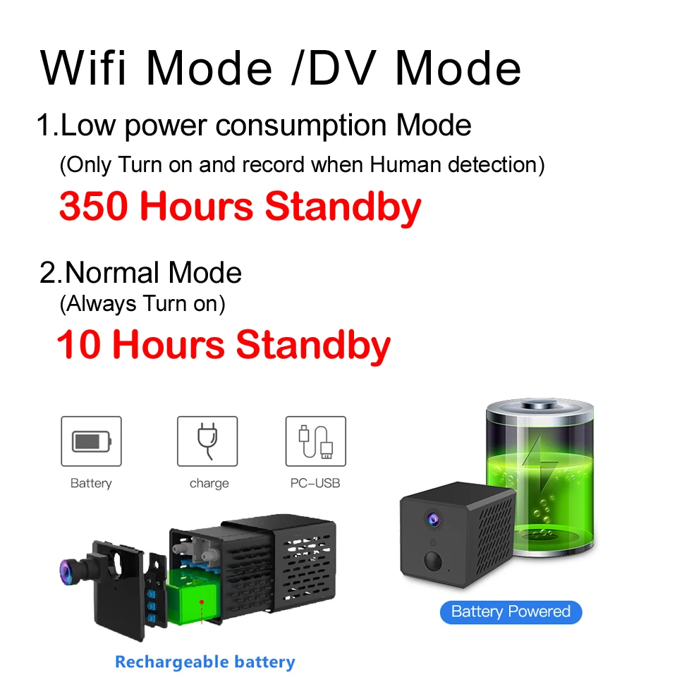 Vstarcam 1080P Мини Wifi камера с 1500 мАч перезаряжаемой батареей ...