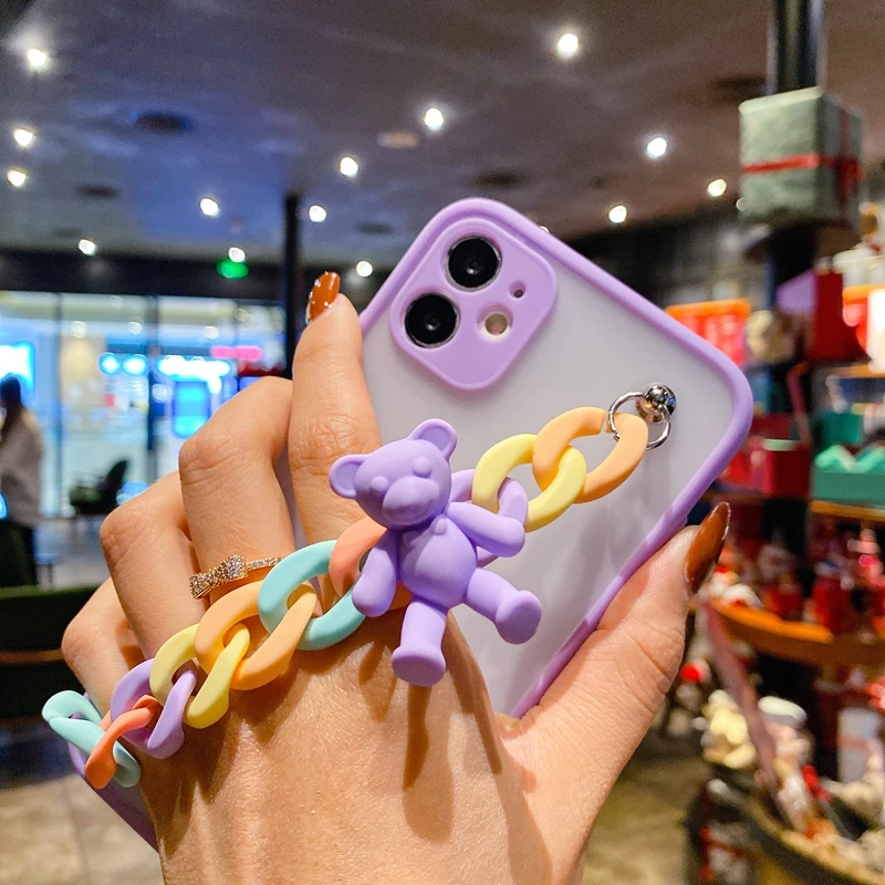 ХарактеристикиCute 3D Cartoons Candy Bear Wrist Chain Strap Soft Phone Case