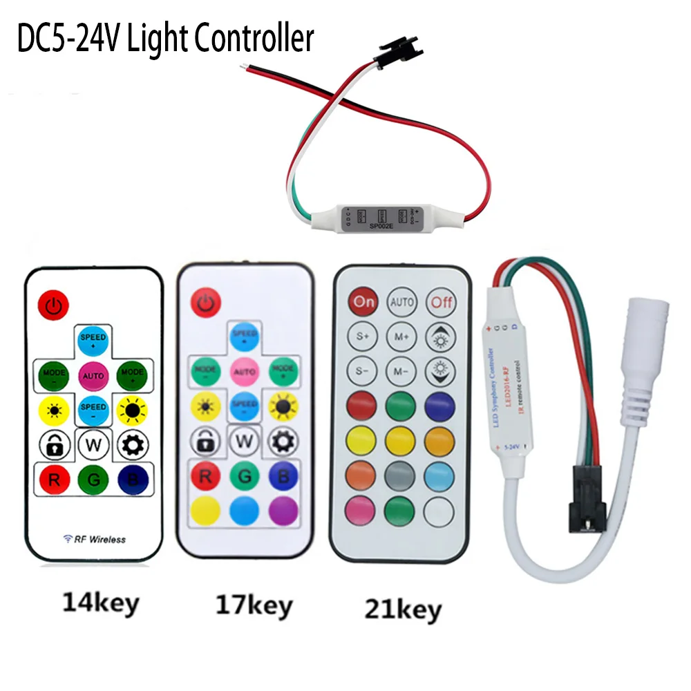 Мини 3key RF 14key 17key 21key светодиодные полосы пикселей DC5-24V светильник контроллер для WS2811 WS2812B SK6812 6803 с пультом дистанционного управления