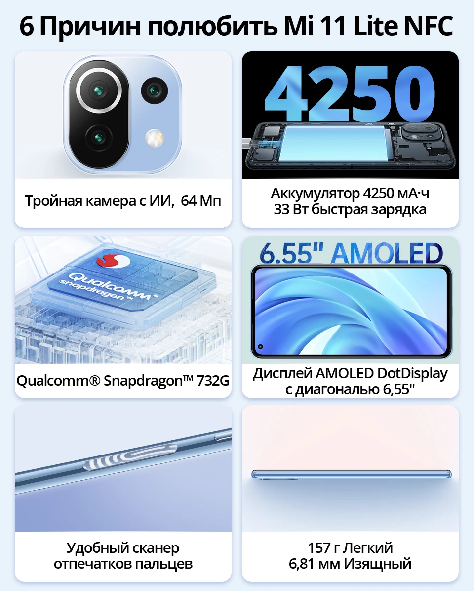 СЮРПРИЗ ПО ПРОМОКОДУ,Xiaomi Mi 11 Lite RU 8+128ГБ,Ростест, Доставка от 2 дня, Официальная гарантия