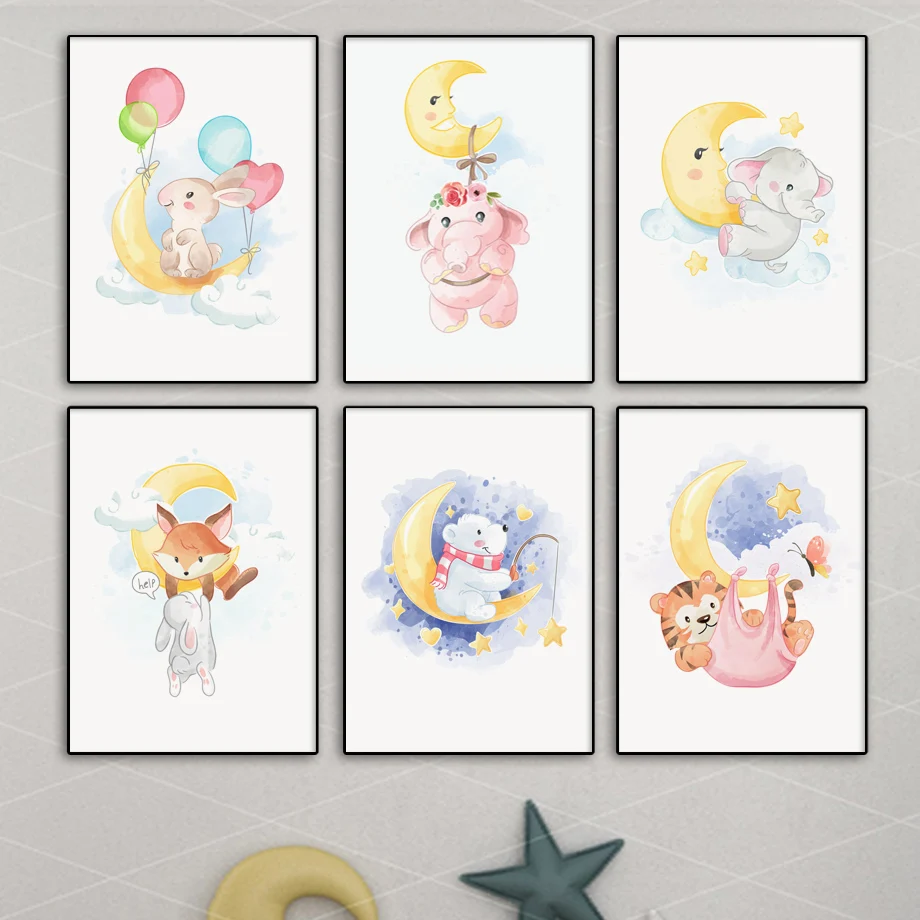 Мультяшный Кролик Слон лиса Тигр Луна настенное искусство 5D DIY алмазная живопись плакаты и принты настенные картины для ребенка Декор детской комнаты