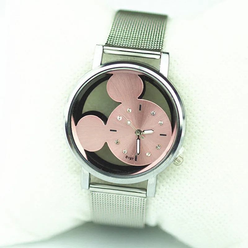 Женские кварцевые часы с Микки Мауса Reloj, модные роскошные брендовые Серебристые наручные часы из нержавеющей стали, 2021