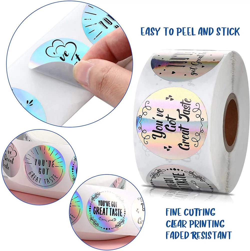 Наклейки серебристые с радугой, 500 пробы, этикетки для печати шт.