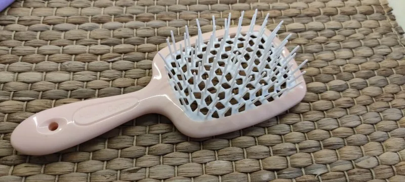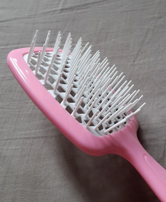 Отличная расчёска! Качественная, красивая, хорошо ложится в руку. Длинные, гладкие зубчики, которые хорошо расчёсывают волосы как в сухом, так и в мокром состоянии. Пластик хорошо амортизирует, при этом отлично выполняя функцию массажа. Спасибо продавцу, за быструю доставку (18 дней). Всем рекомендую данную расчёску.