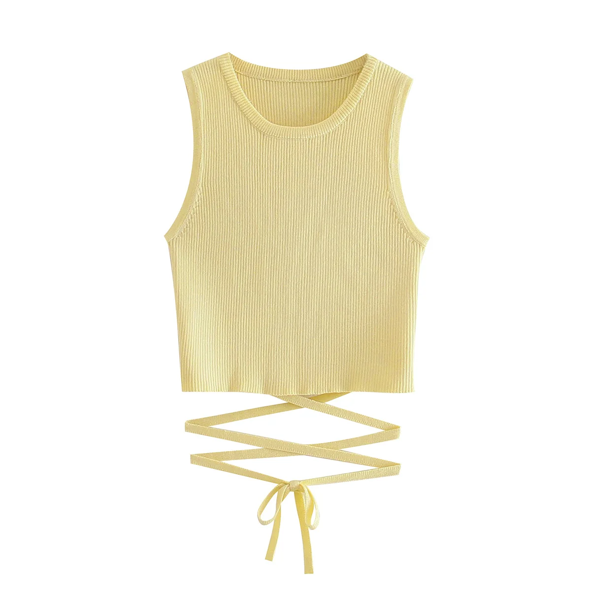 Женский трикотажный топ на шнуровке, модный дизайнерский Повседневный пикантный шикарный эластичный женский топ, Новинка лета 2021