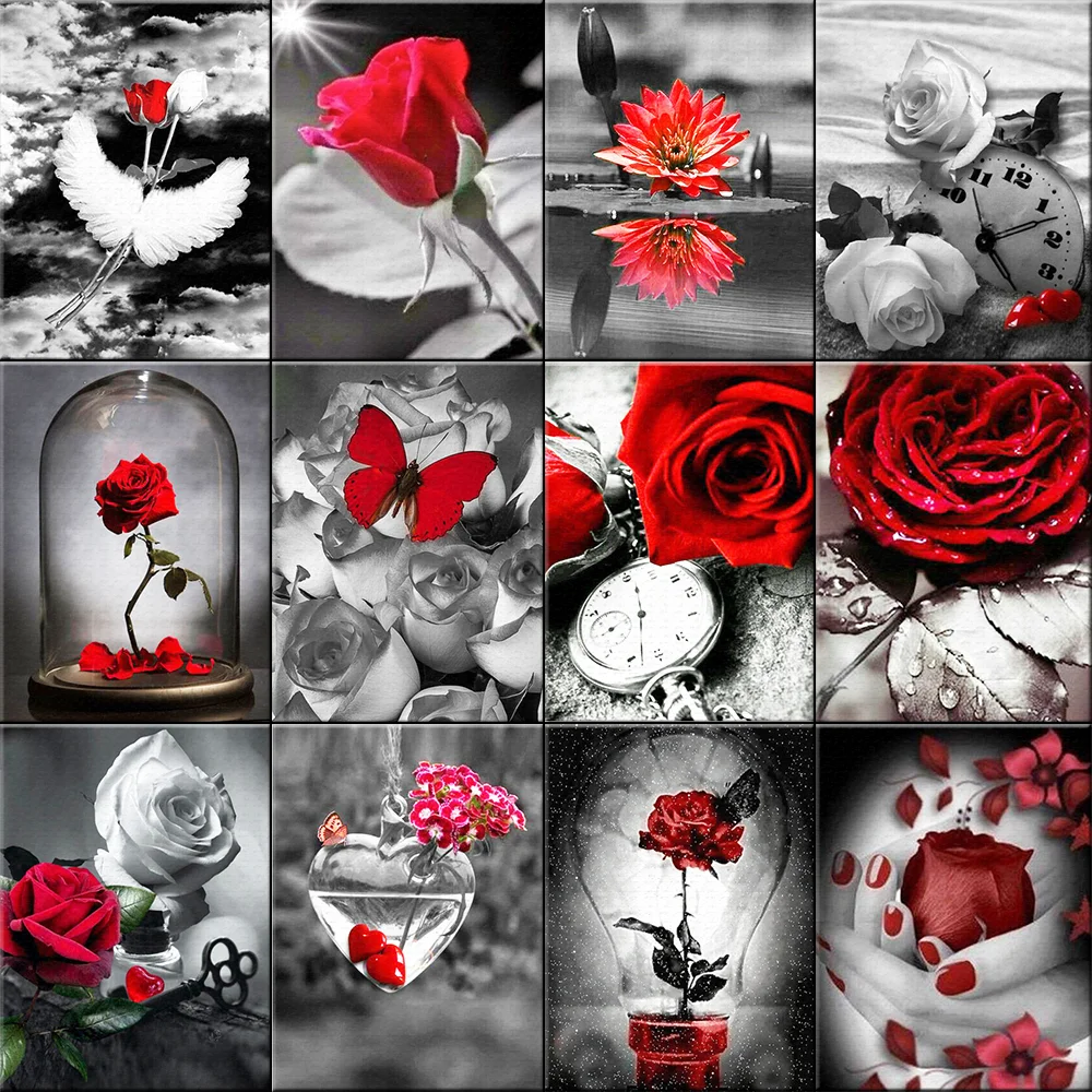 5D алмазная живопись, роза, цветок, алмазная вышивка, черный, белый стиль, мозаика, распродажа, картина Стразы, домашний декор, уникальный подарок