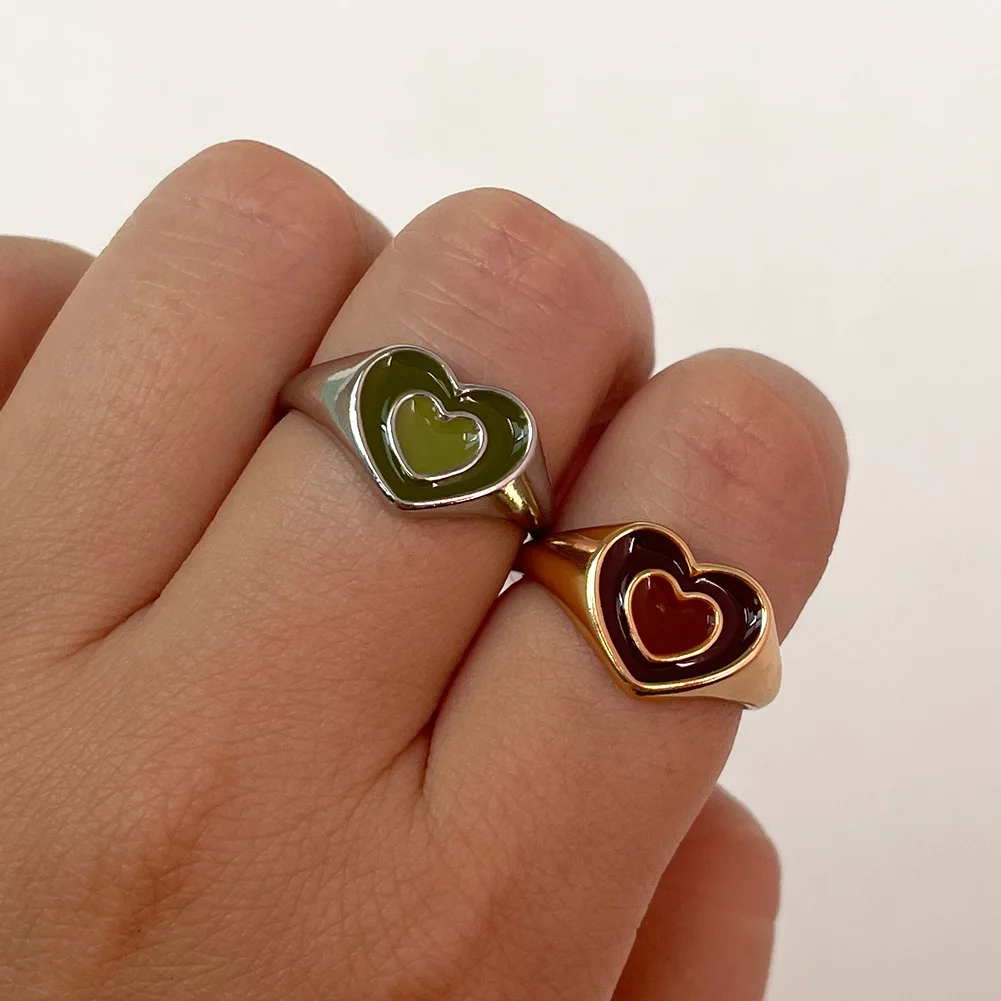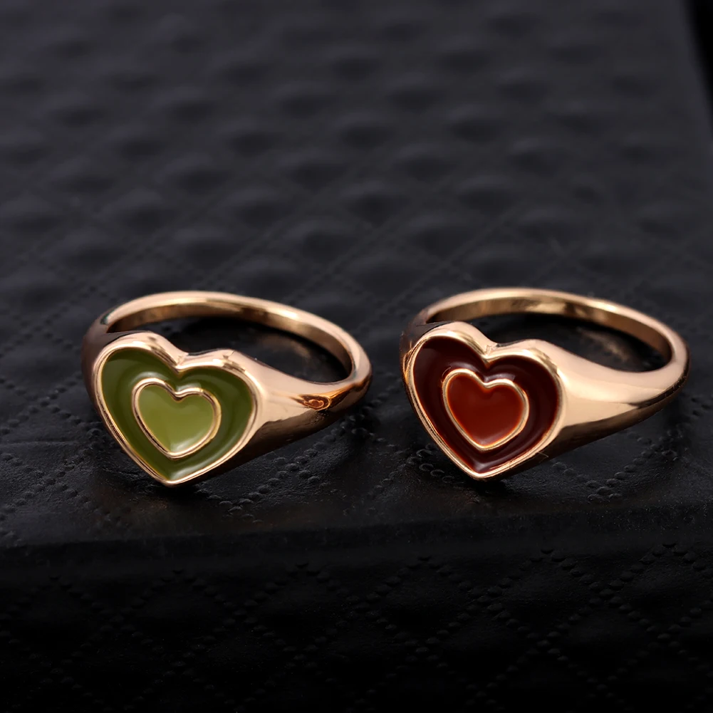 Кольцо в виде сердца Ins с эмалью женское, милое Двухслойное яркое Ювелирное Украшение для вечеринки, хороший подарок для девушек и женщин, 2021