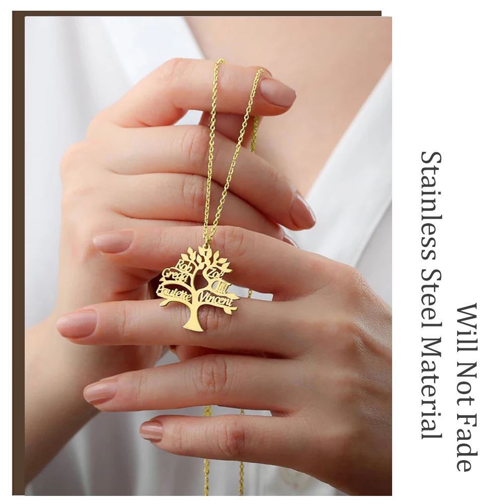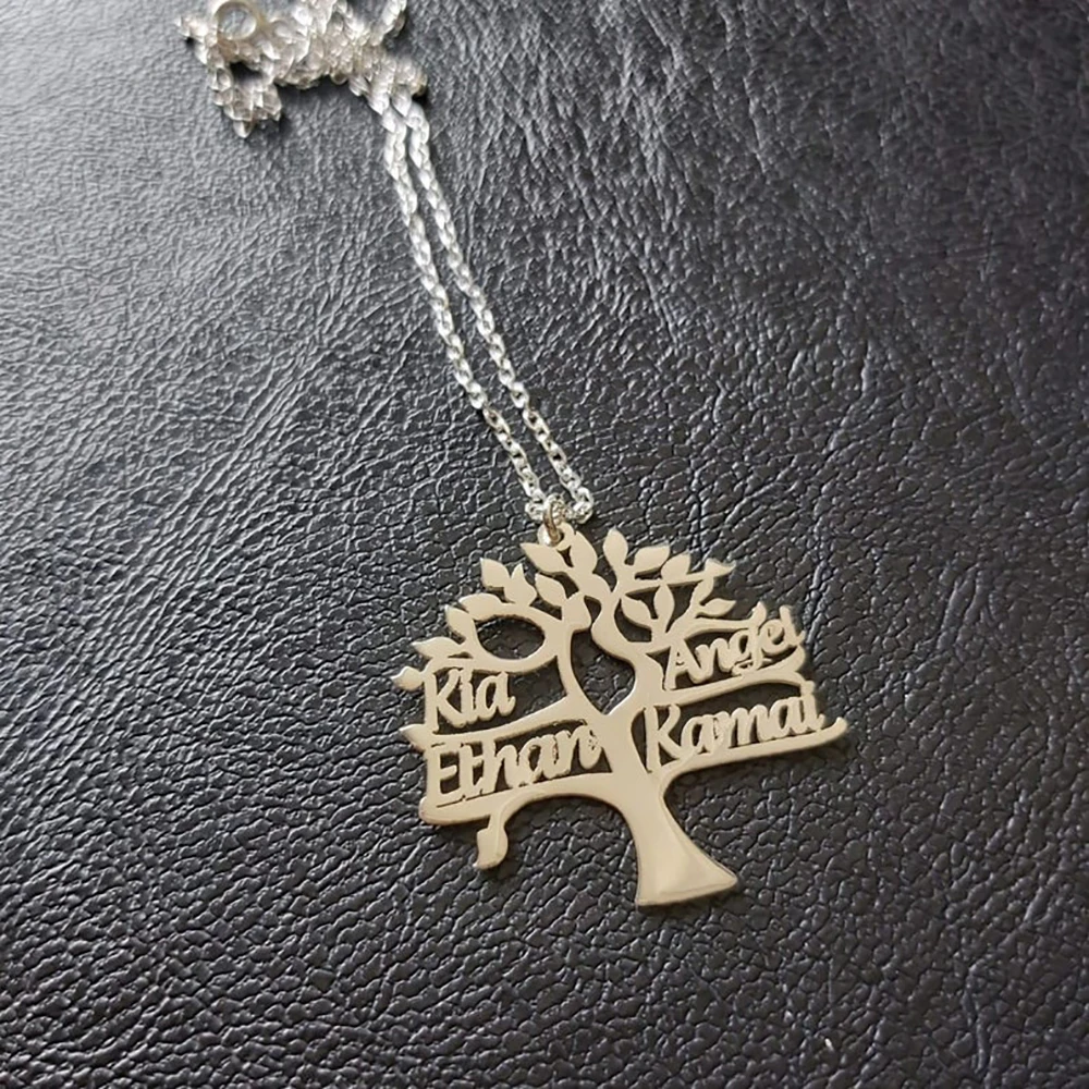Мини-мир, новинка, индивидуальное ожерелье с именем семейного дерева жизни, табличка из нержавеющей стали, семейный подарок для мамы на Рождество