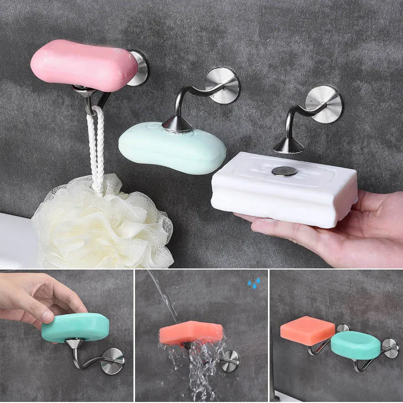 Новинка, держатель для мыла, самоклеящаяся Магнитная подвесная посуда для мыла, стержень из нержавеющей стали, не сверляет, для ванной комнаты