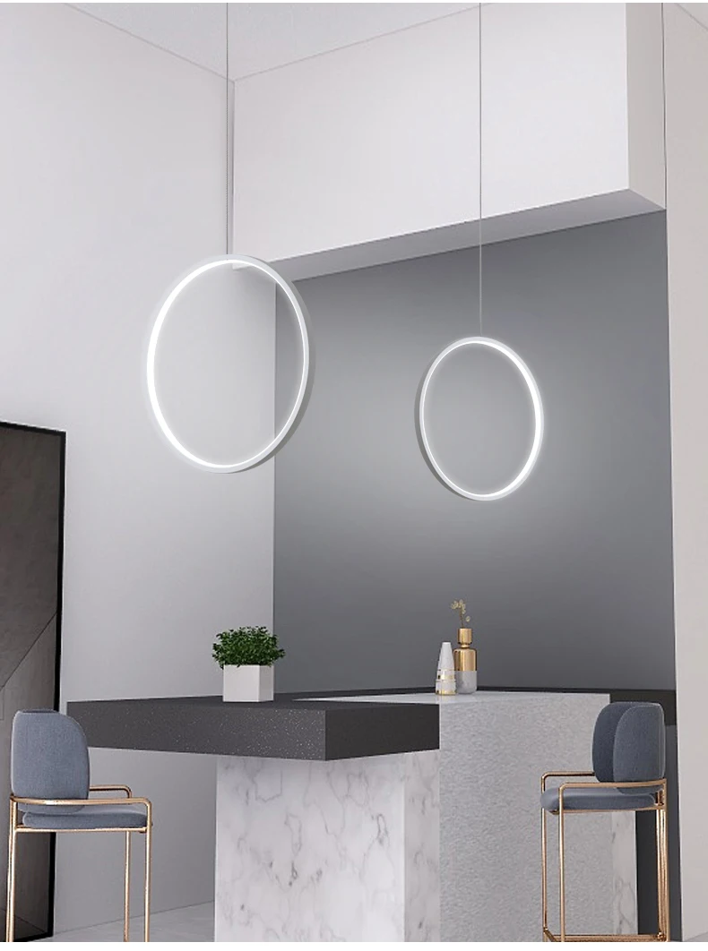 Современный круглый подвесной светильник, креативная вертикальная лампа-кольцо для лестницы, лобби, простая светодиодный ная люстра