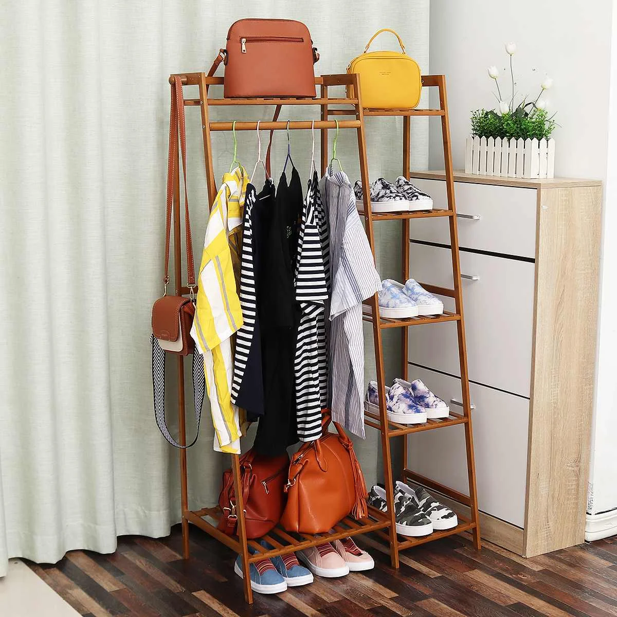 Особенности:-Эта Бамбуковая вешалка для одежды изготовлена из твердого натурального бамбука и имеет свежий стиль.-Эта 5-уровневая вешалка для одежды с подвесным стержнем, боковыми подвесными крючками и 7 полками позволяет легко организовать всю вашу одежду, обувь, сумки, шарфы и так далее.-Благодаря этой вешалке для одежды ваш дом станет организованным, аккуратным и аккуратным местом, которое вы когда-либо ожидали.