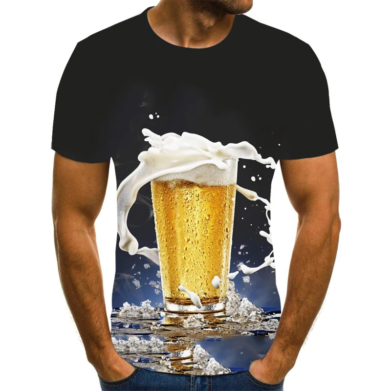 Футболка мужская с круглым вырезом, модный топ с 3D рисунком пива, Повседневная рубашка с короткими рукавами в стиле панк, лето