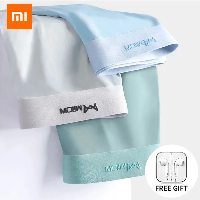Трусики Xiaomi Youpin, мужское нижнее белье, новый комплект, антибактериальные однотонные бесшовные ледяной шелк, дышащие трусы-боксеры размера плюс