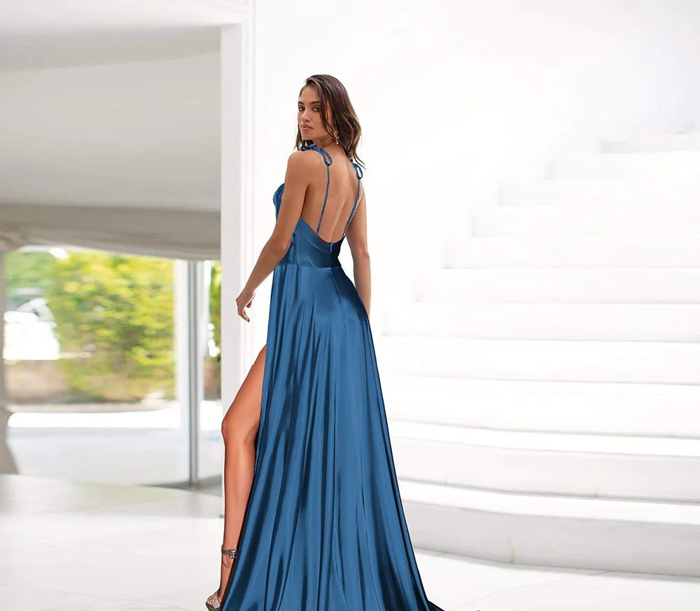 LUXIYIAO LO172 платья 2022 сексуальные Мятные длинные шелковые платья для выпускного вечера с высоким разрезом на бретельках без рукавов атласное вечернее женское платье с открытой спиной