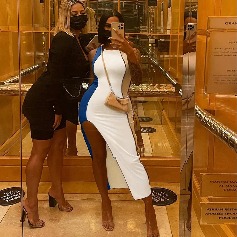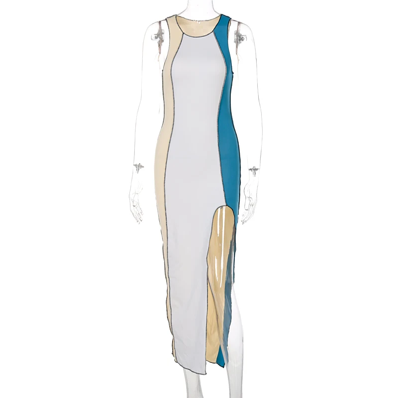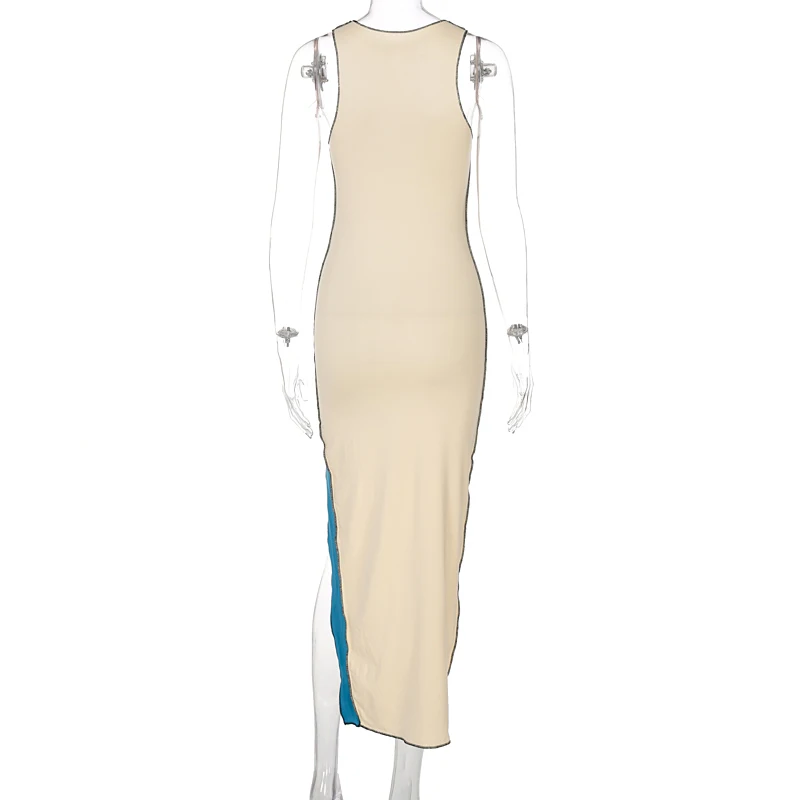 Женское платье без рукавов Hugcitar, однотонное облегающее платье с круглым вырезом и разрезом, уличная одежда для вечеринки, Y2K, лето 2021