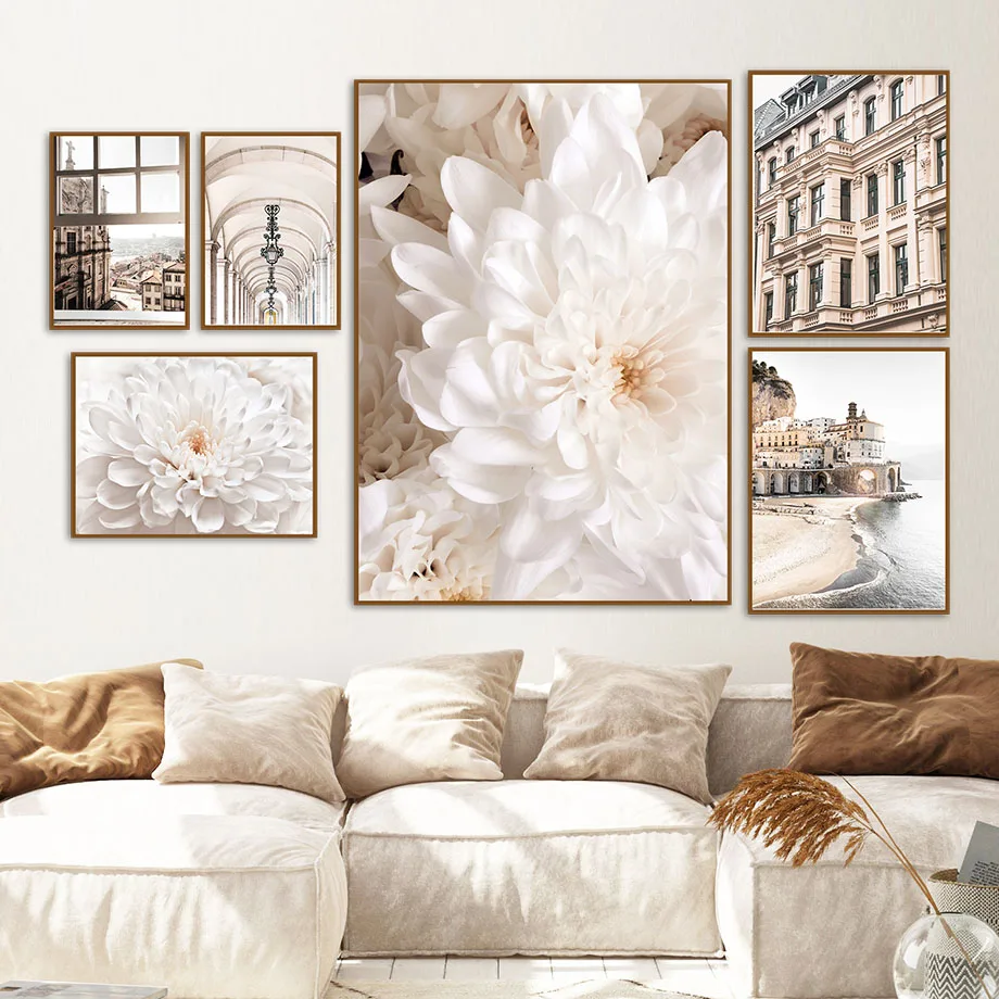 Георгин с цветочным узором, Одежда для пляжа, церковное здание Wall Art Холст Картина Nordic Плакаты и принты Настенный декор фотографии